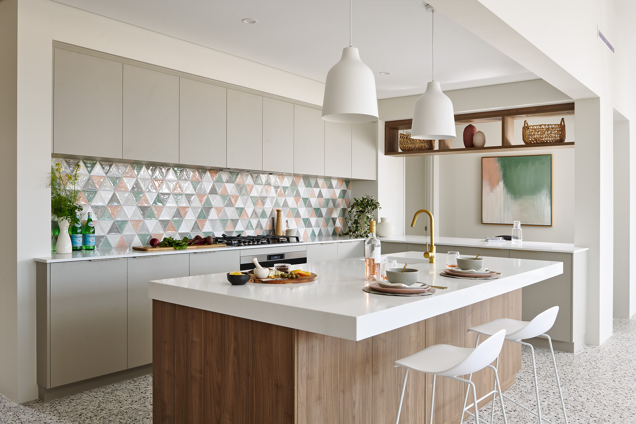 With more visible wall space splashbacks are now making their way to the ceiling, creating beautiful opportunities for feature blocks of colour or texture in a design.