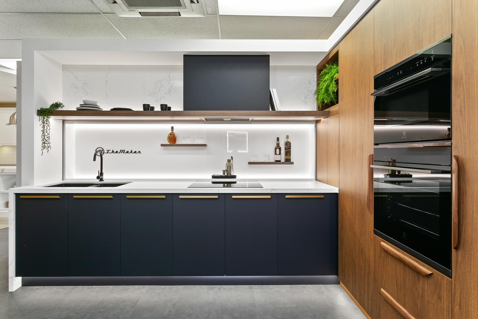 Minimalist kitchen design in recent years has reimagined the typical look and feel of kitchen cabinetry. Overhead cupboards and storage are less frequent these days, quite often replaced with a statement floating shelf as a feature in a kitchen design.