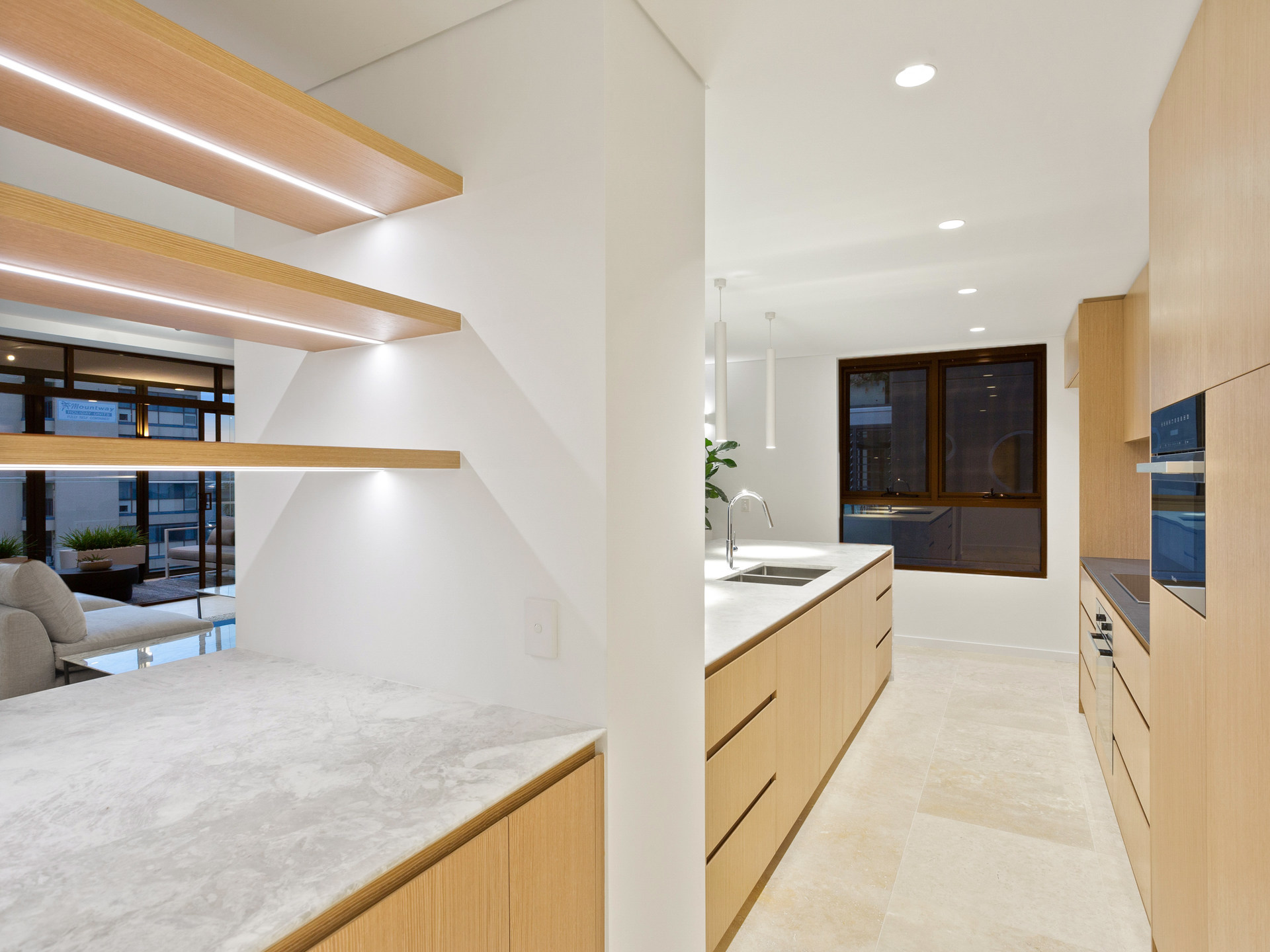 The Maker Exclusive Kitchens team consists of experienced, high level tradespeople who are able to perform technically difficult work with curvature and wall cladding. Some recent projects that have showcased this unique ability include Scarborough Beach Pools reception area (Cooper & Oxley) and Primewest Office Development (Georgiou).