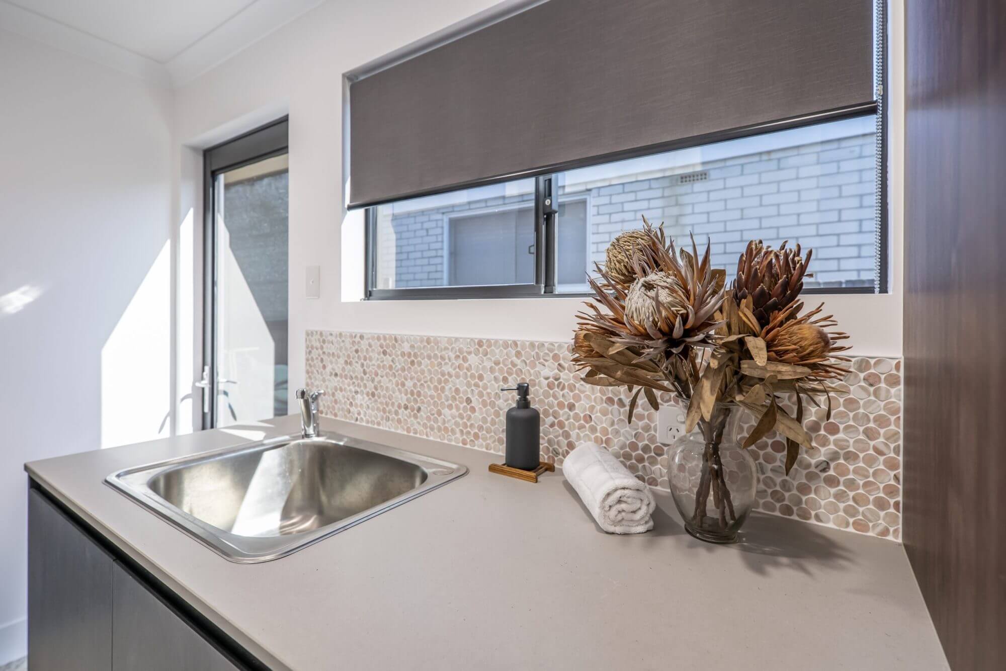 This beautiful kitchen renovation we completed in Dianella was designed to be a modern contemporary contrast to the original style of this 1959 character home. The main purpose of this kitchen renovation was to create an open plan kitchen, living and dining space. As part of this home renovation project our clients also renovated their laundry, added a room and an ensuite.