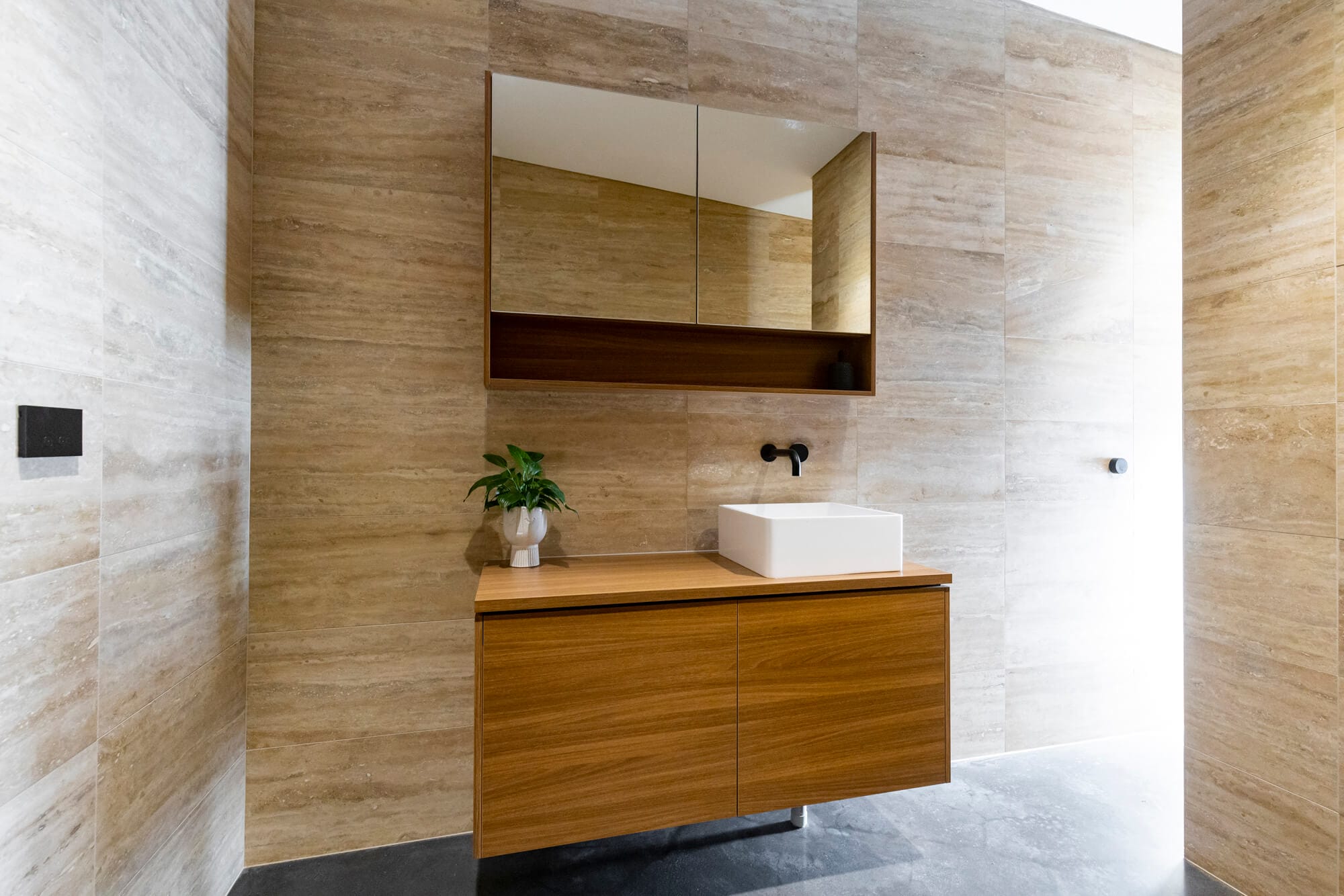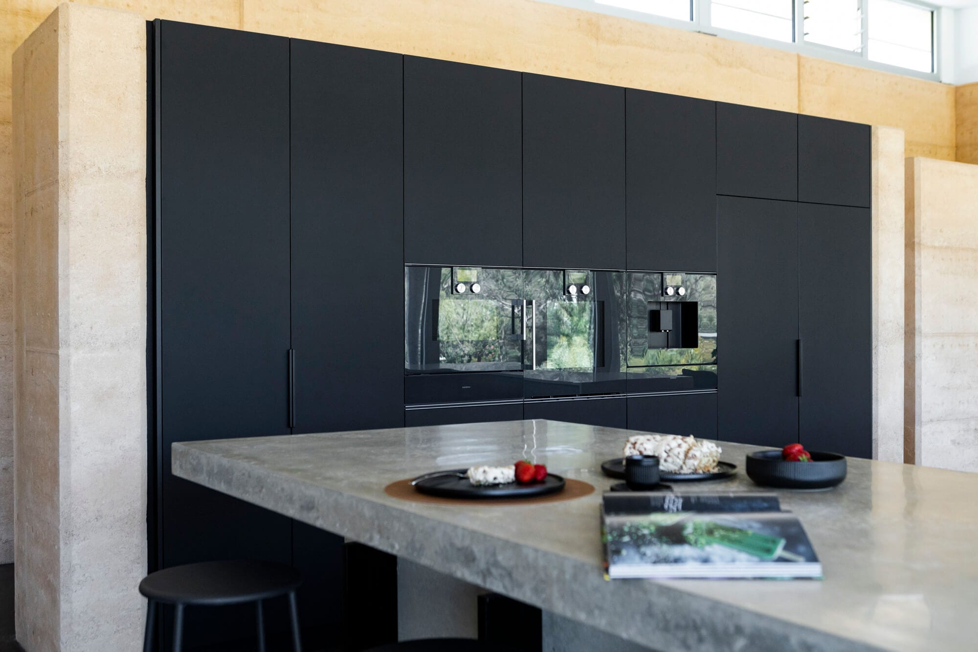 Contemporary design meets earthy elements in this stunning new modern kitchen we completed for our clients in Maida Vale. Aligning with the natural bushland setting, we have combined raw textural surfaces with clean minimalistic kitchen style to create a truly unique design for this luxury new residence.