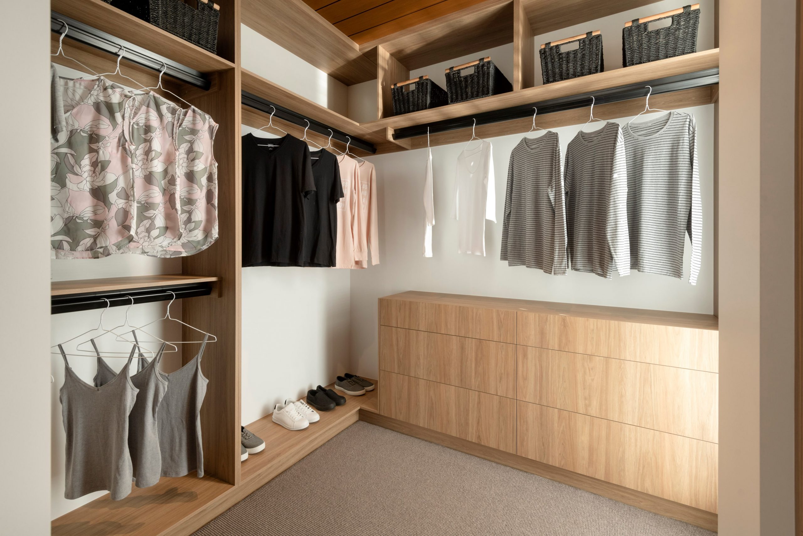 White cabinetry in Polytec Crisp White Legato was used to one side of the kitchen, contrasted by the soft tones of the Prime Oak colours to inject some warmth whilst still maintaining the brightness of the space.