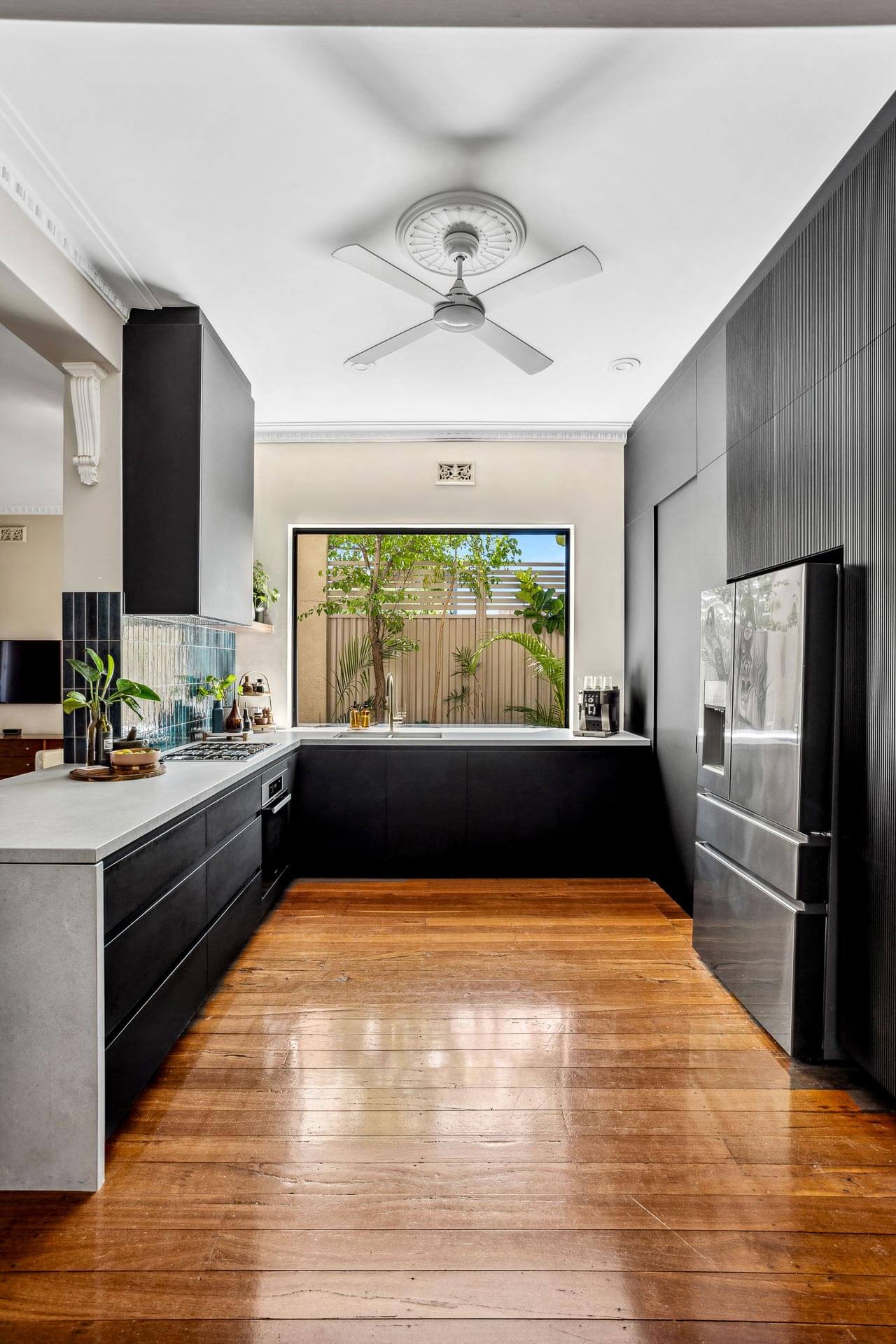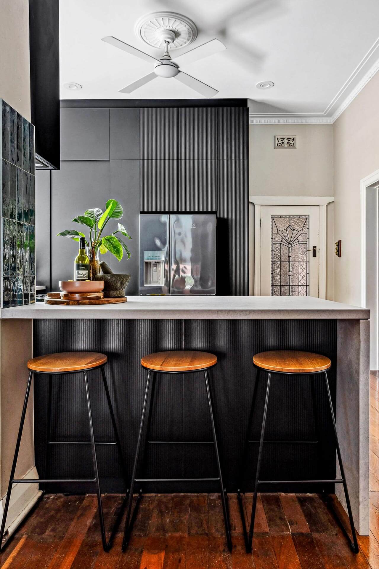For this striking kitchen renovation we completed in Mount Hawthorn, our Interior Designer was tasked with creating a design that would compliment the traditional features of this character home as well as maximise storage and use of space in a set kitchen area.