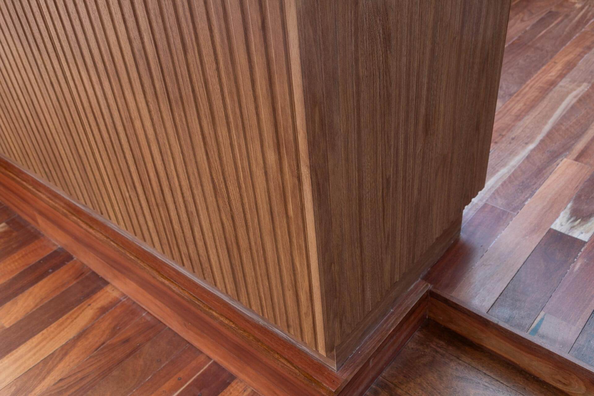 The Mid-Century vibes are strong in this striking little retro renovation we completed for our clients in Myaree. The brief was to design a modern Mid-Century style kitchen to tie in with their 1960’s family home. A kitchen design that complimented existing features such as the original Jarrah flooring; and that maximised on space and kitchen storage in a smaller kitchen footprint.