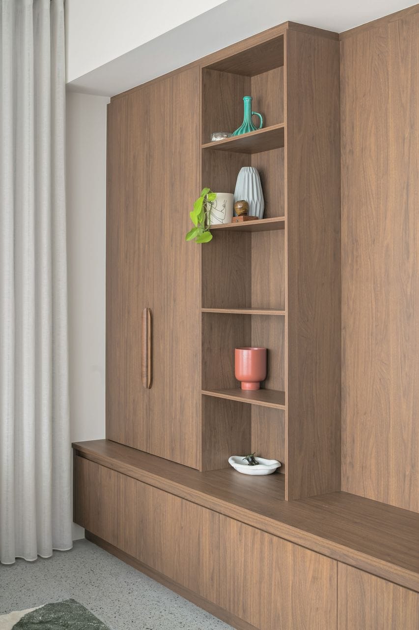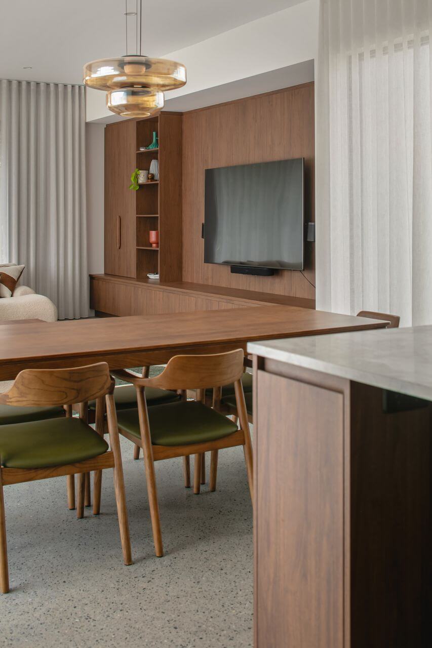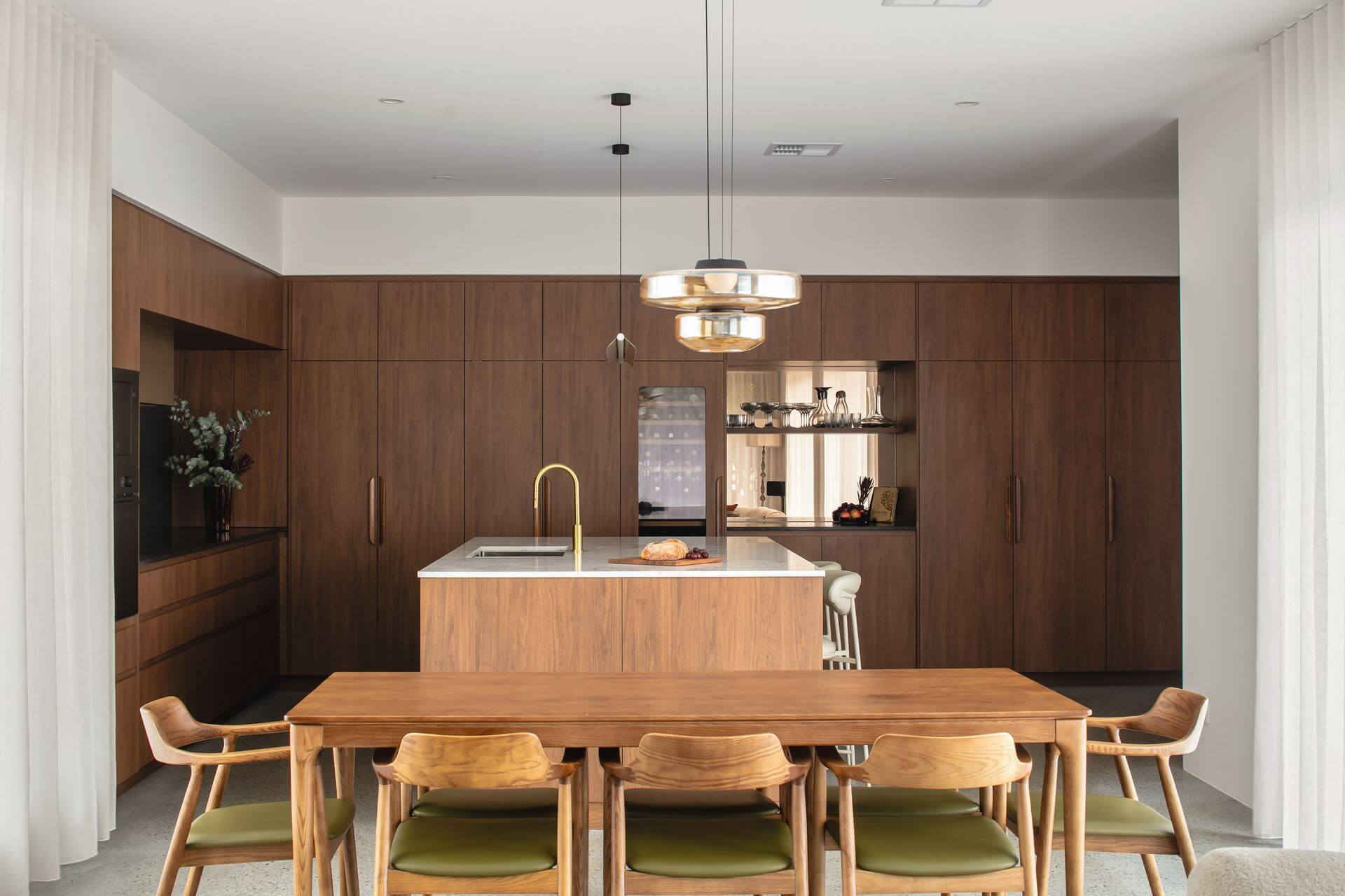 Extending seamlessly from the kitchen, the living area continues the same Florentine Walnut to create a cohesive, connected space.