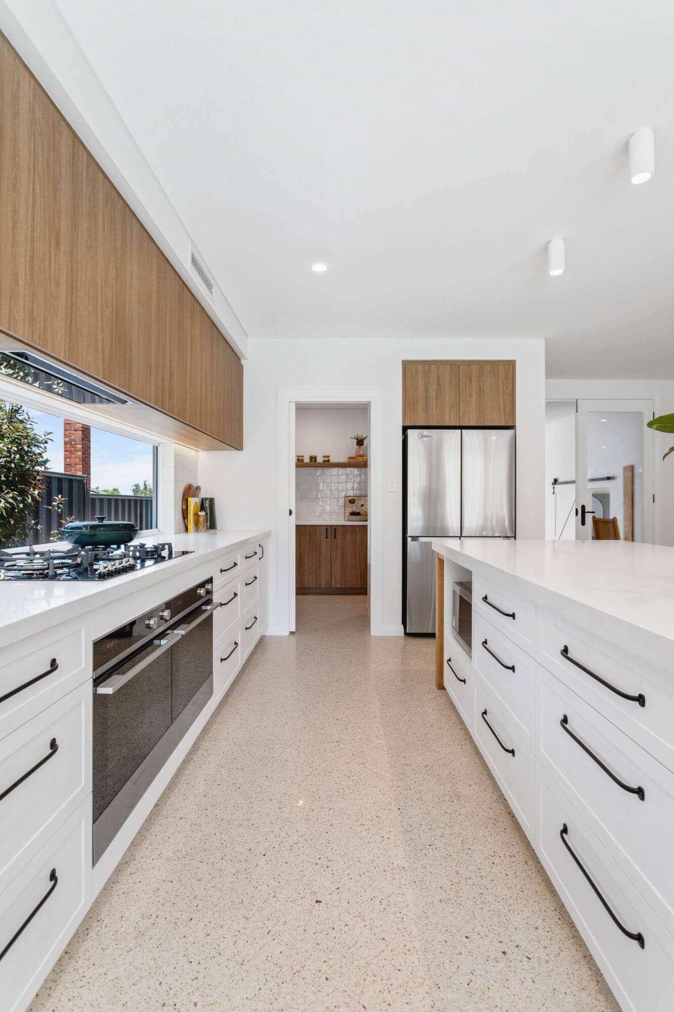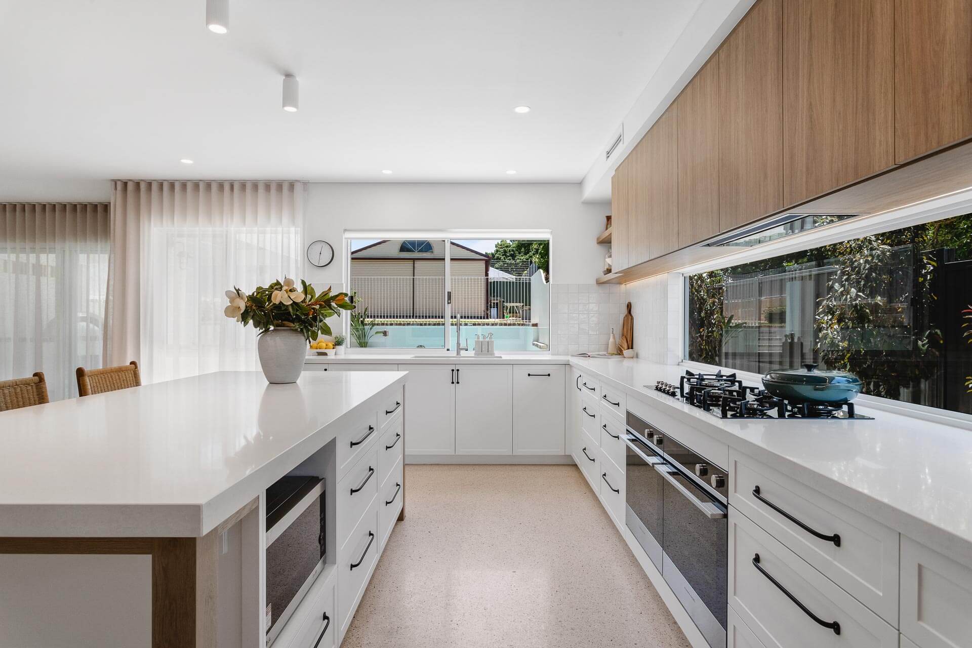 This incredible kitchen renovation we completed for Emma and James in Victoria Park was part of a complete home renovation project to transform this space. Our clients were seeking a Modern Shaker style kitchen in keeping with the original era of their home as well as a more practical layout for everyday family life, better kitchen storage and improved overall functionality.
